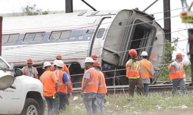 at one of the carriages of the derailed Amtrak train, which crashed just outside